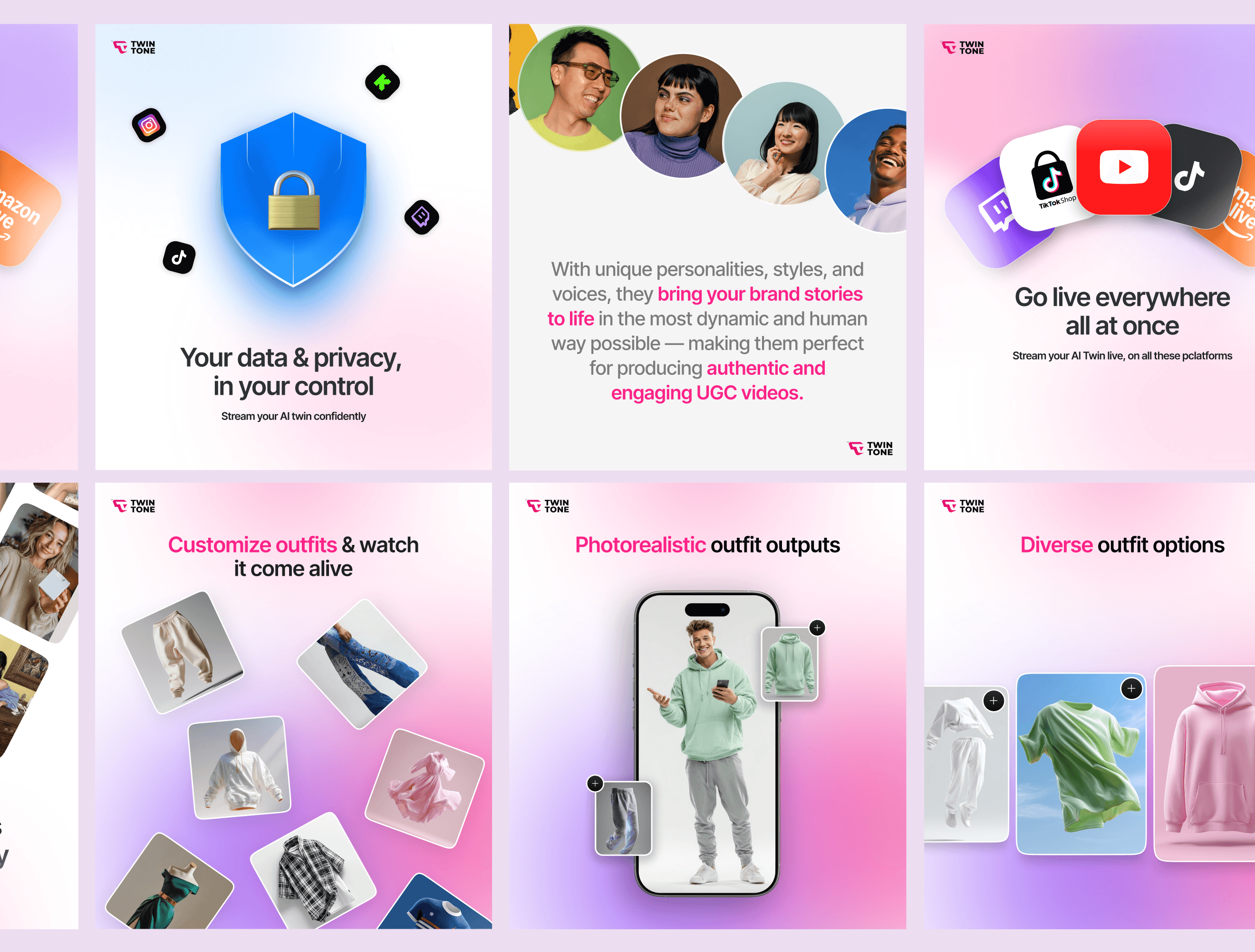 TwinTone is one of the world’s leading AI UGC platforms, with millions of brands & creators, redefining how content is produced at scale. By turning real creators into “AI Twins”, the platform enables brands to generate creator-led videos, livestreams, and product content instantly, without the limits of traditional UGC production.